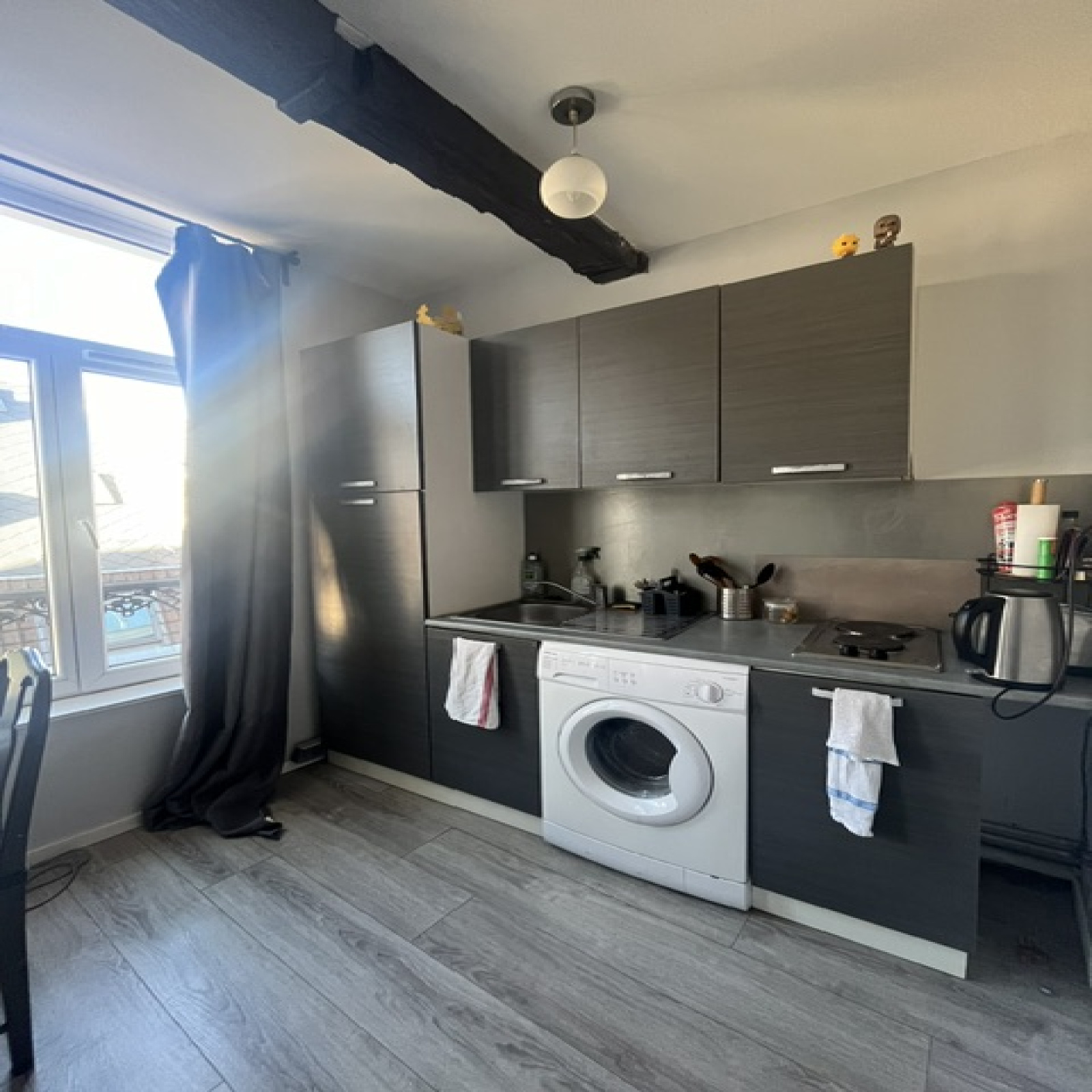 Situé à 1min de la gare Lille Flandres, un studio meublé de 18 m2 composé d'une pièce de vie avec cuisine équipée, table et deux chaises, un canapé convertible. Une salle de douche et wc.