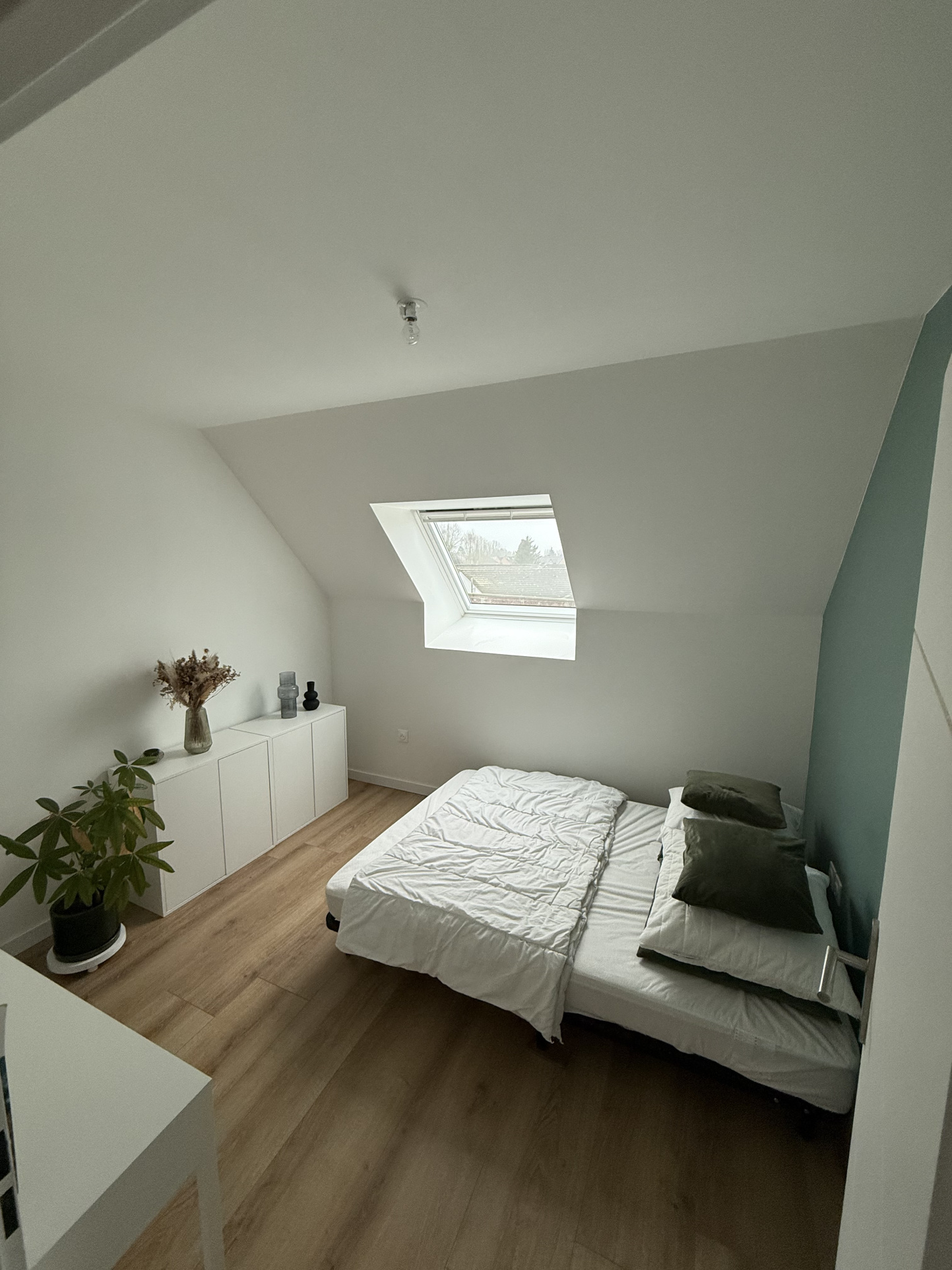 A l'étage : deux chambres, un dressing et une salle de bains avec WC.