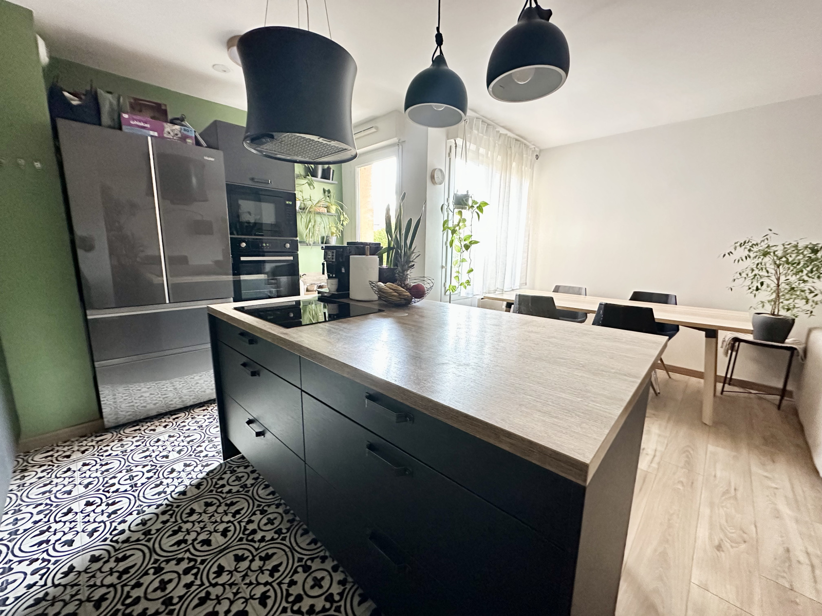 D’une surface d’environ 65 m², ce bien en parfait état offre un cadre de vie confortable et fonctionnel. Il se compose d’une cuisine entièrement équipée ouverte sur un large séjour lumineux, bénéficiant d’une belle exposition sud-est, idéale pour profiter d’une luminosité naturelle tout au long de la journée.