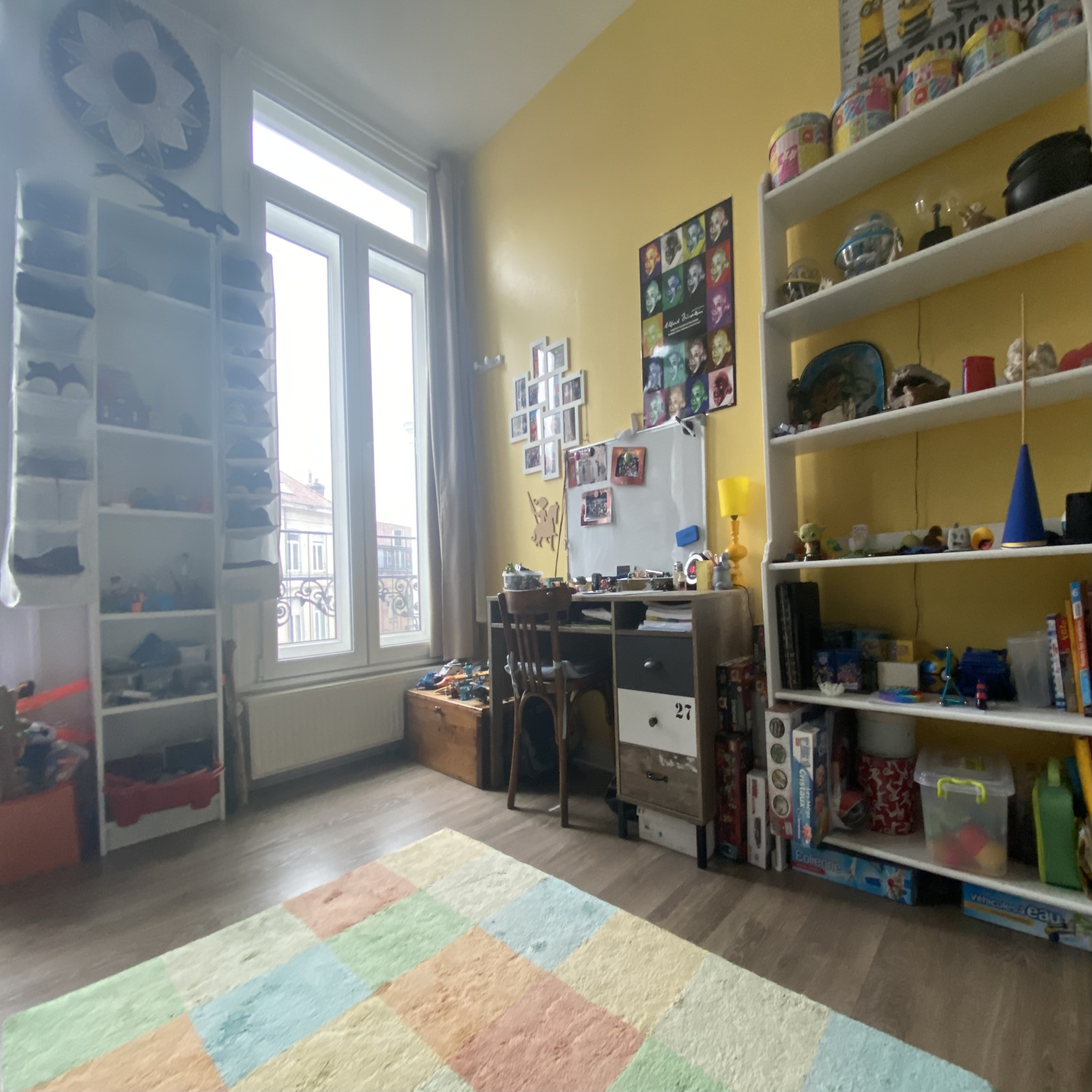 Lille centre. Au coeur de la vie lilloise, découvrez ce bel appartement d'angle très lumineux. Située dans une jolie copropriété des années 30 de 3 lots, au 2e étage sur 3 (avec ascenseur), il offre une vue dégagée sur la place des Halles. Grâce à son double vitrage, vous serez au calme à l'intérieur, tout en profitant du plaisir d'un quartier lillois très animé!
