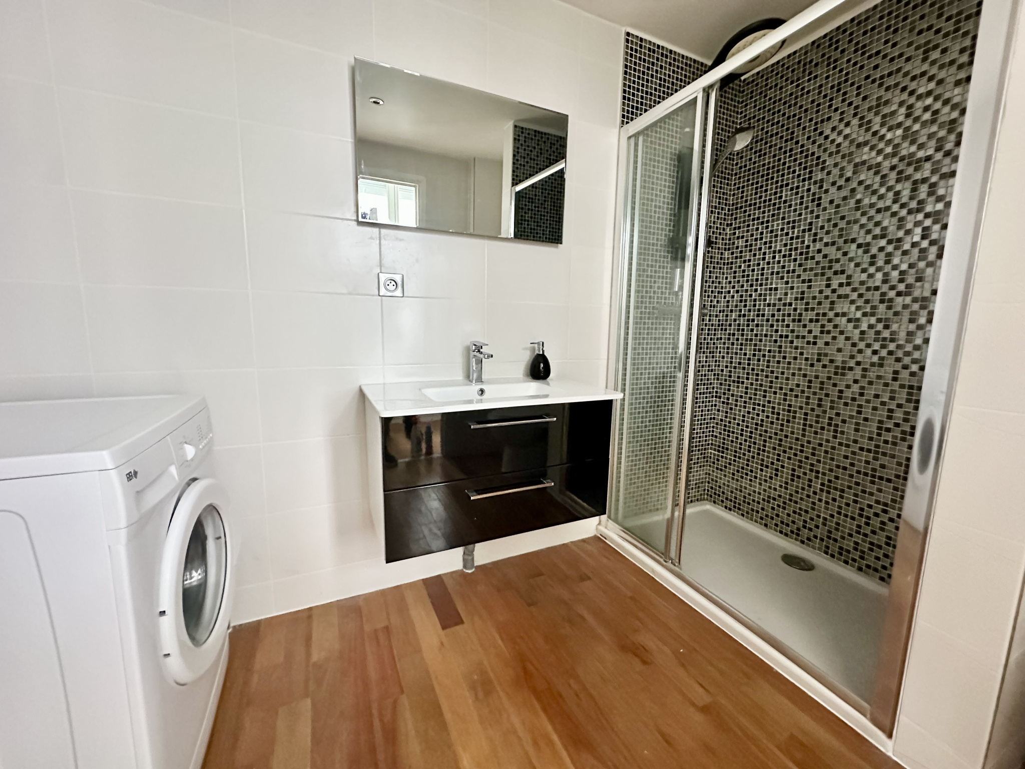 Terrasse privative (possibilité de construire une véranda), parquet en chêne massif, auncun travaux à prévoir.