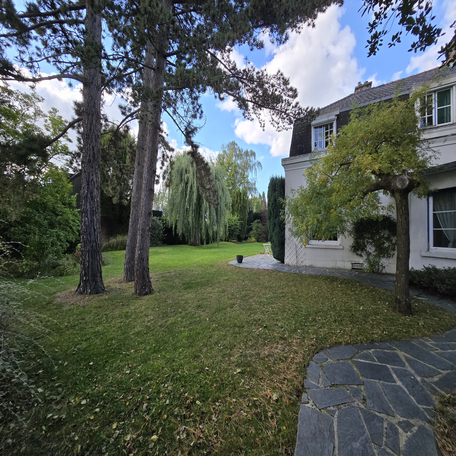 La maison est implantée sur un terrain de plus de 1 000 m², avec un jardin accessible depuis les pièces de vie.