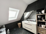 À l’étage, le palier dessert trois chambres dont une chambre parentale d’environ 15 m² avec placard intégré, ainsi qu’une salle de bain.