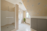 À l’étage la maison se compose de trois chambres et d’une salle d’eau, les combles permettent un espace de stockage supplémentaire