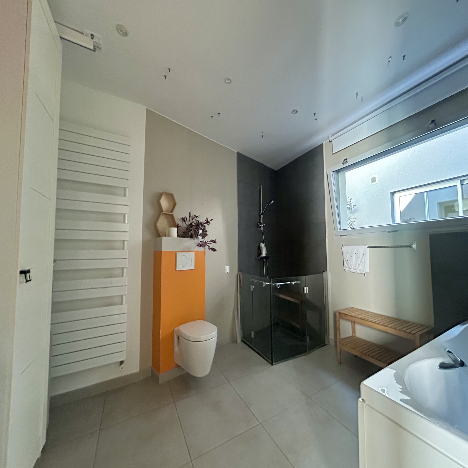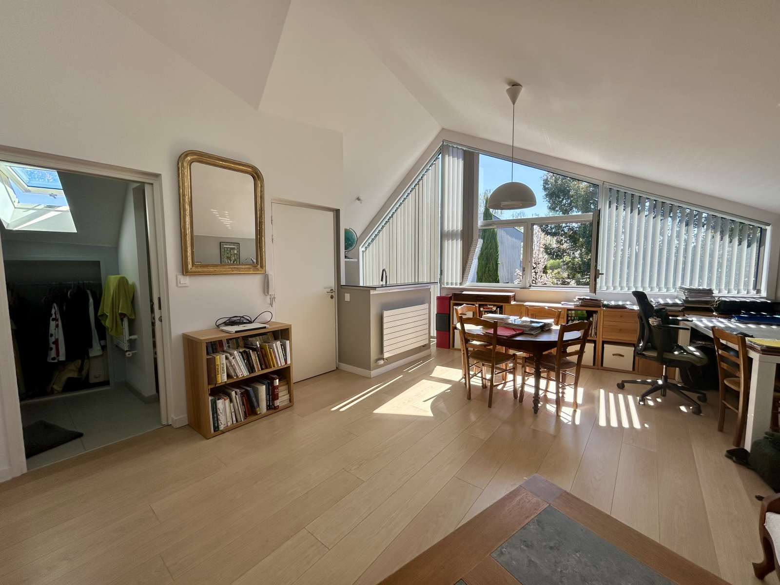 À l’étage, un espace qui peut se tranformer en un appartement indépendant de type T2 d’environ 41 m² avec pièce de vie, cuisine, chambre et salle d’eau, idéal pour un projet locatif ou un espace parental.