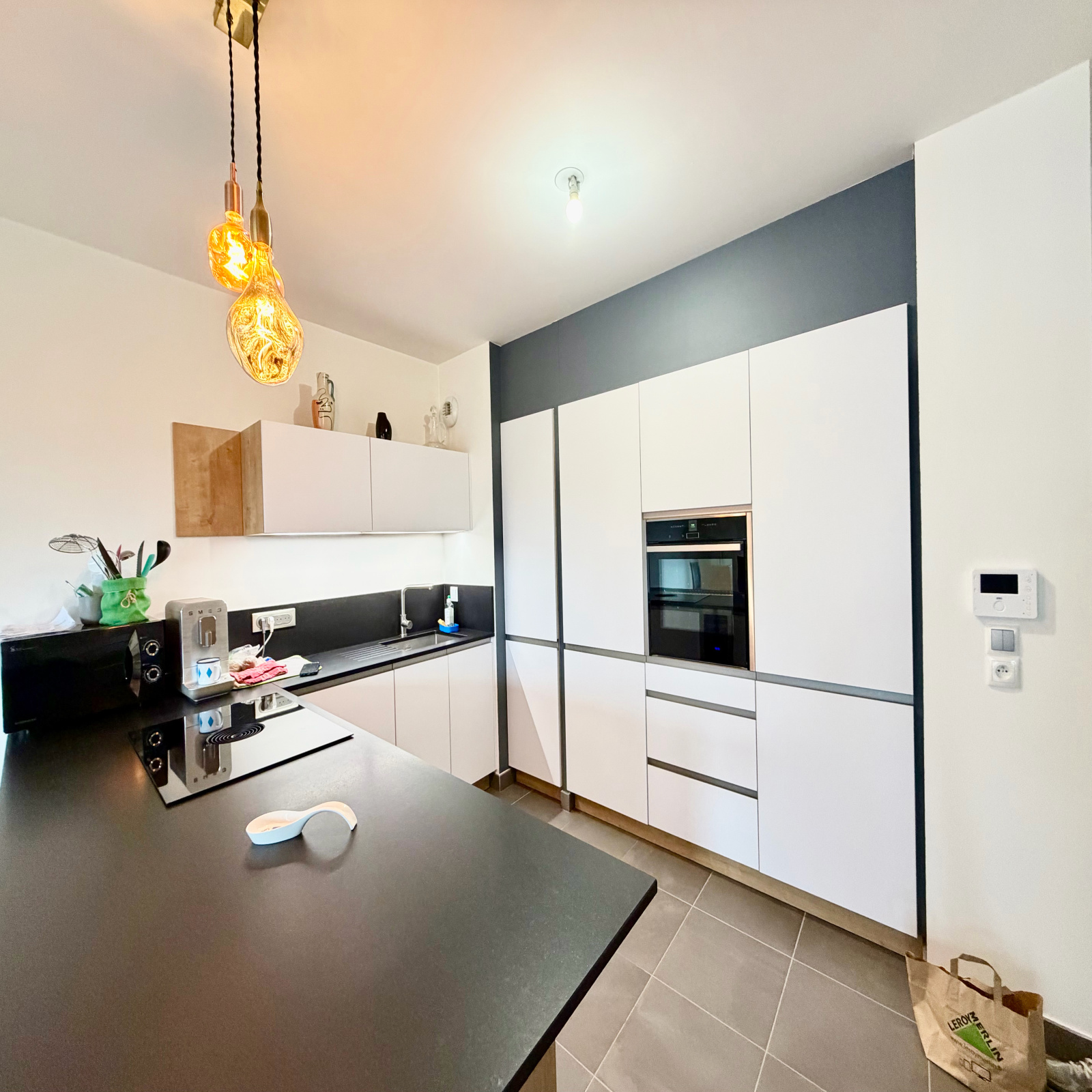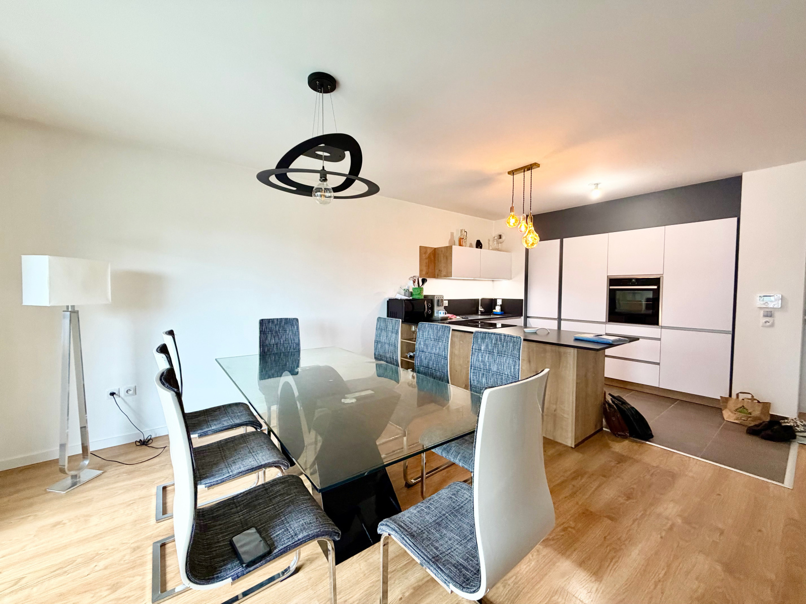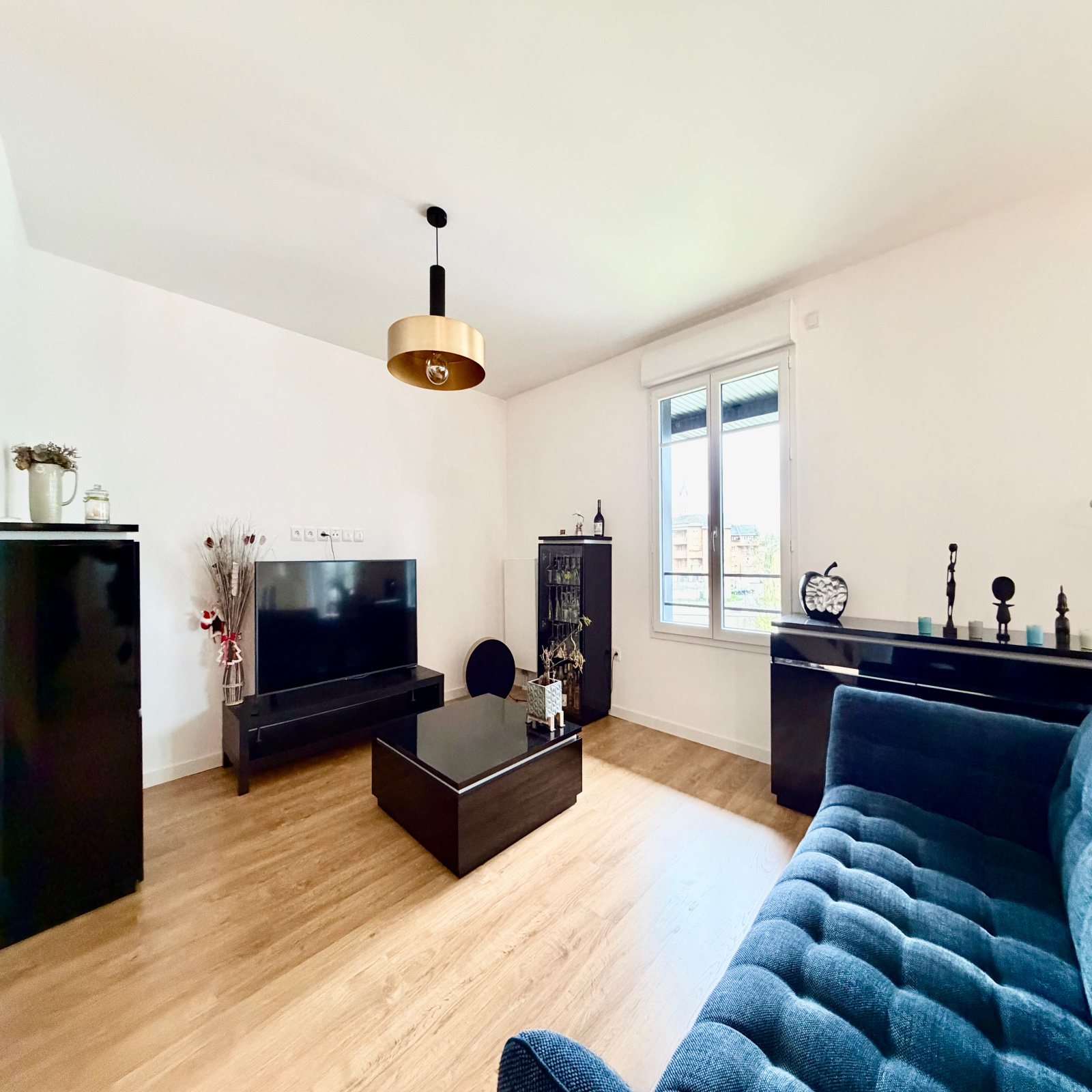 - Un salon/séjour lumineux avec cuisine d'environs 44m², parfait pour vos moments de détente et de convivialité.
