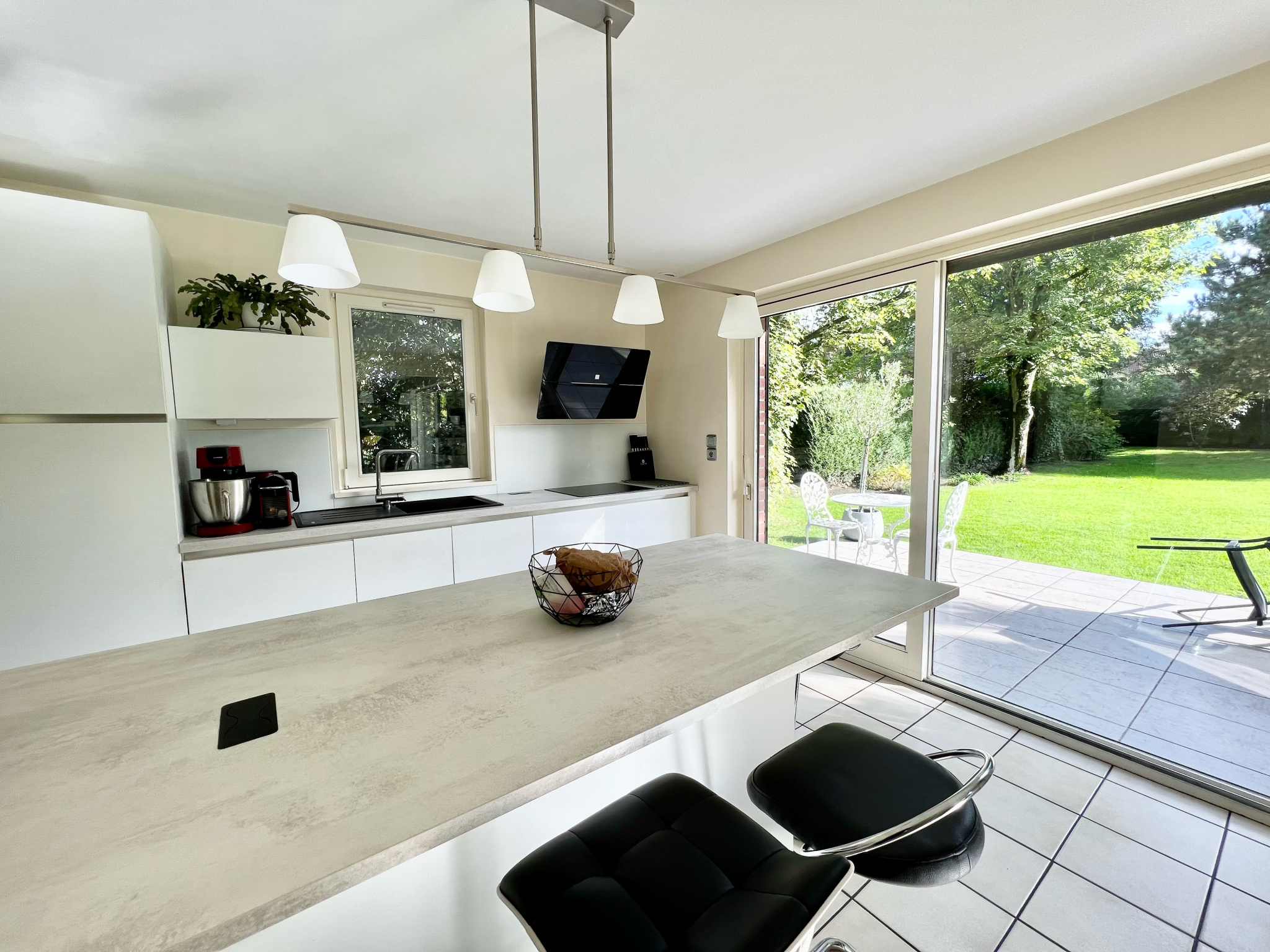 - Au-rez-de-chaussée : d'un séjour de 31m2, d'une cuisine équipée de 13m2, et d'un cellier de 9m2 avec accès sur le garage
