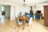 Sous-sol complet de 107 m² avec garage double et espace atelier Jardin clôturé raccordé au tout-à-l’égout Isolation par l’extérieur chaudière gaz récente poêle à bois moderne cuisine équipée fenêtres double vitrage et porte d’entrée récente