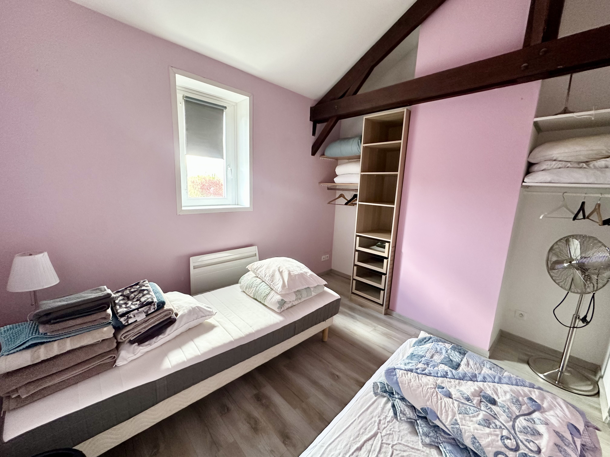Le bien se compose d’une entrée au rdc, au premier étage un séjour lumineux, un salon et une cuisine entièrement équipée. À l’étage, l’espace nuit offre deux chambres et une salle de bains.