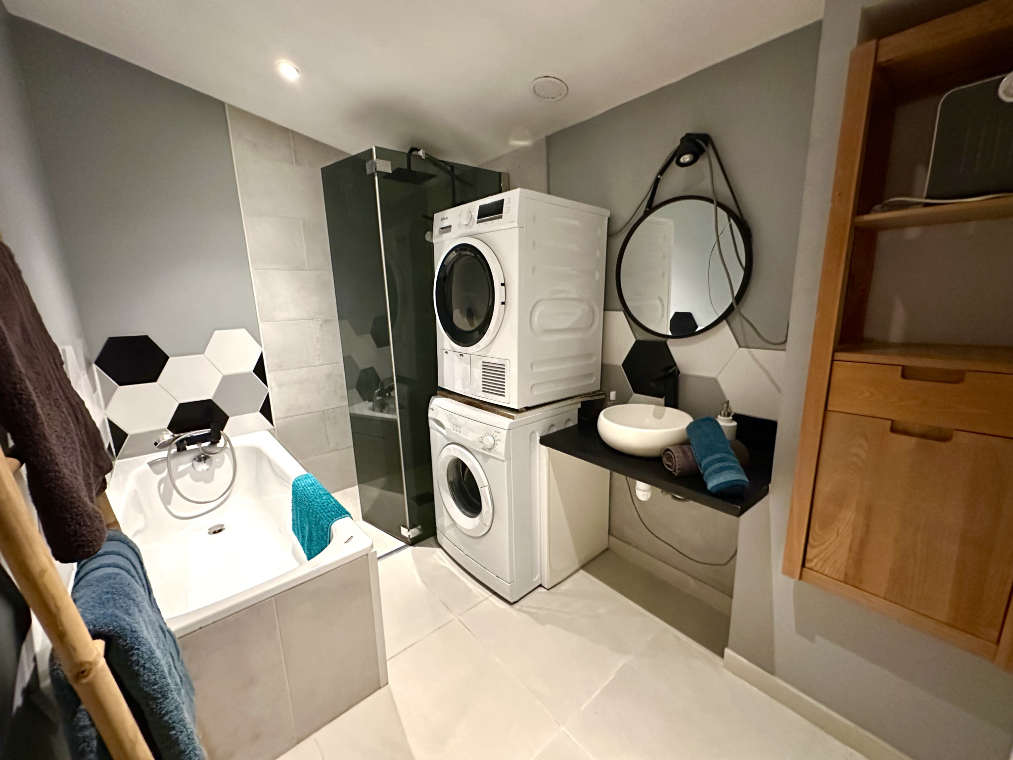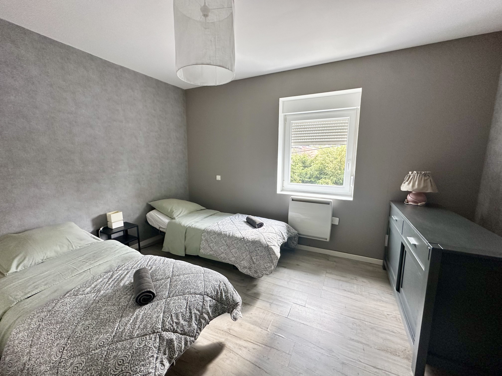 À l’étage : 2 chambres, une salle de douche.