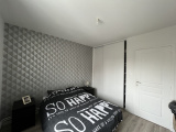 À l’étage la maison dispose d’une salle de bain équipée d’une double vasque et d’un sèche serviette ainsi que de trois chambres aux surfaces d’environ 10 m² 8,5 m² et 9 m²