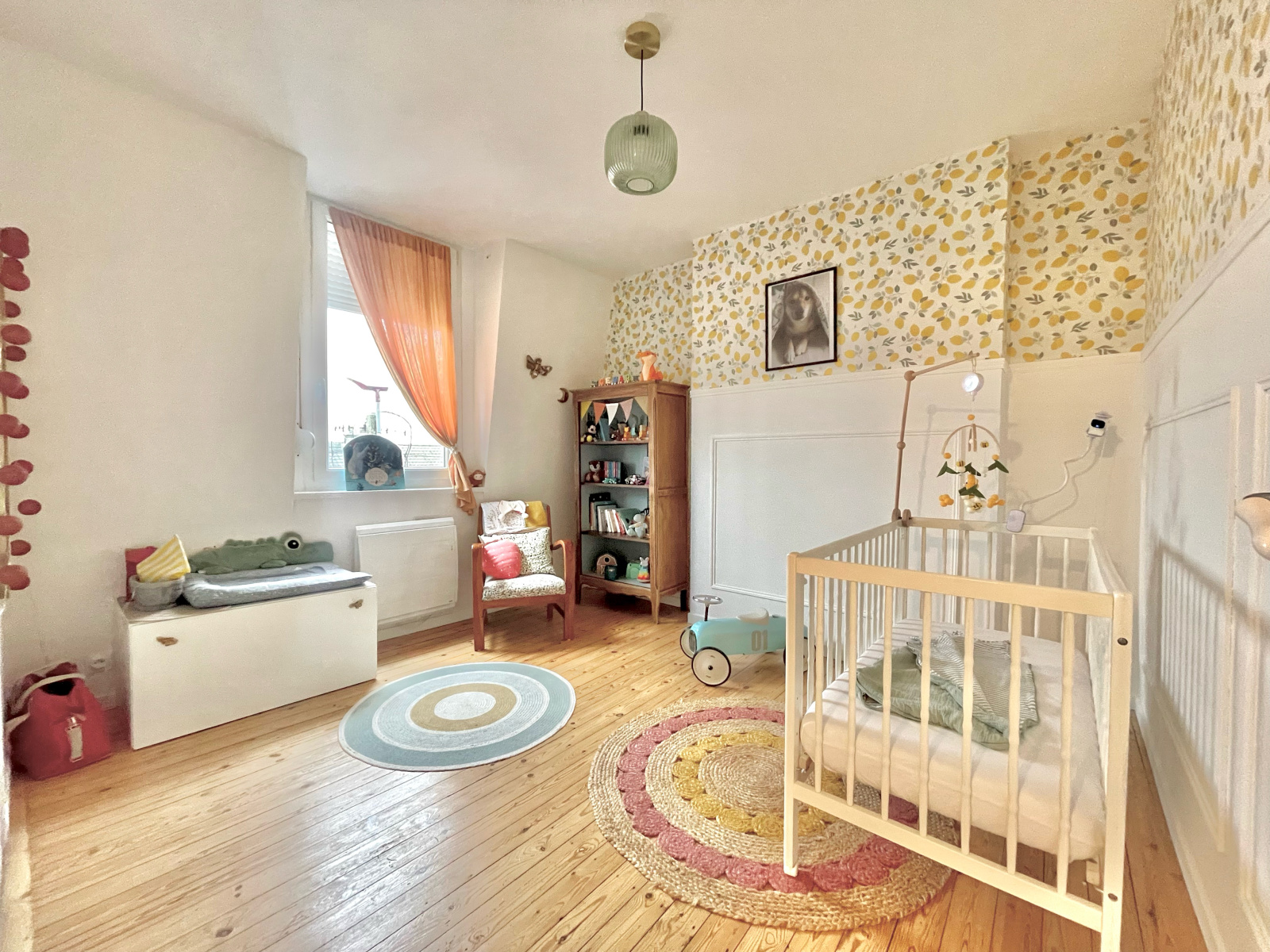Au premier étage, vous trouverez une première chambre avec grand dressing intégré, un second WC et une salle de bain familiale avec douche et baignoire.