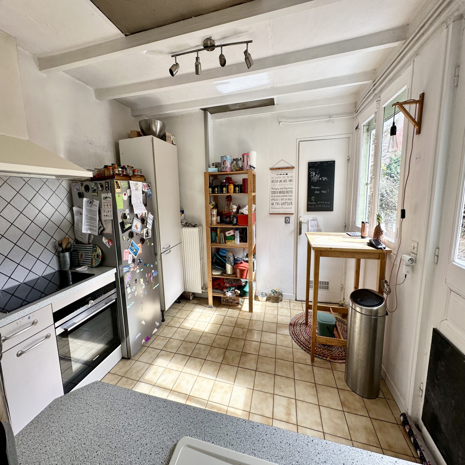 Cette maison familiale se compose au rez-de-chaussée d’un salon, d’un séjour et d’une cuisine aménagée située dans une extension.