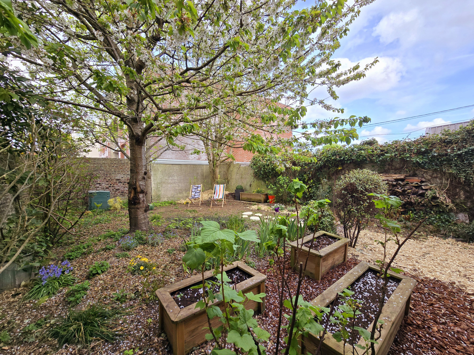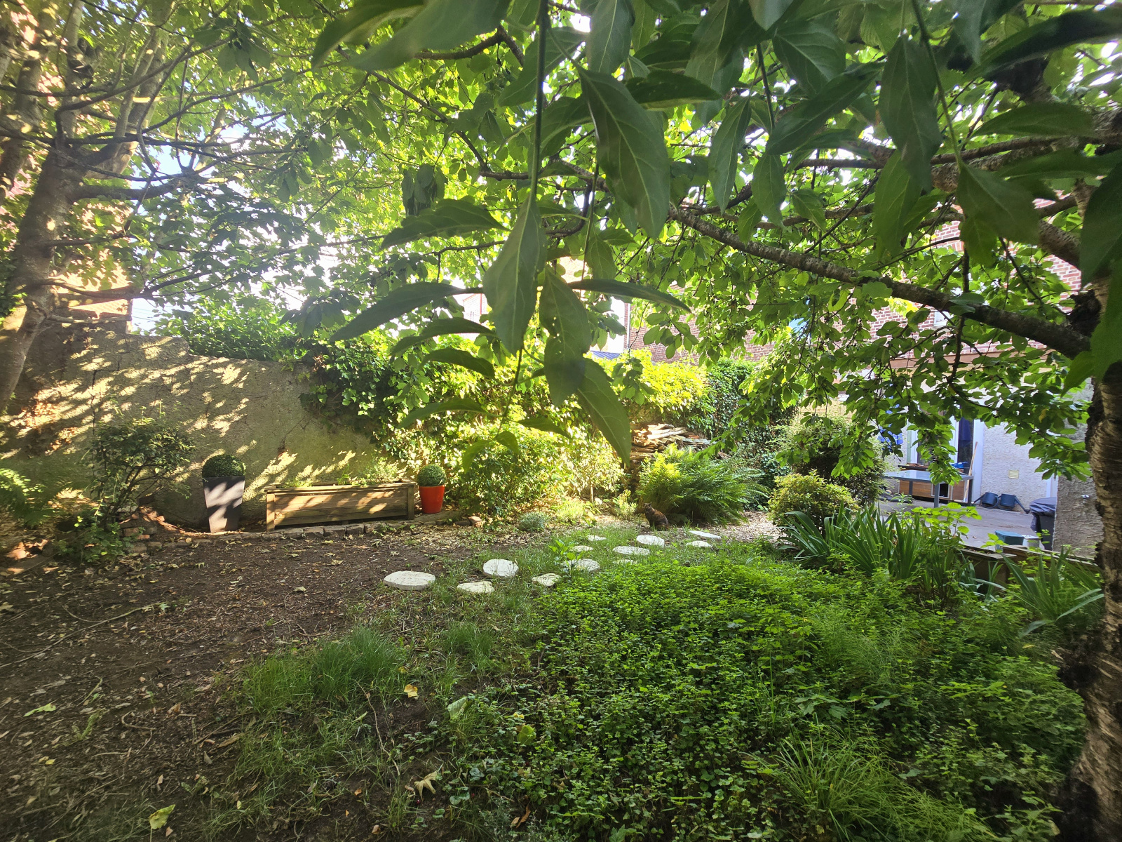 La maison dispose d’un jardin de 75 m², d’un cellier et d’un garage attenant, offrant des espaces de rangement et de stationnement.