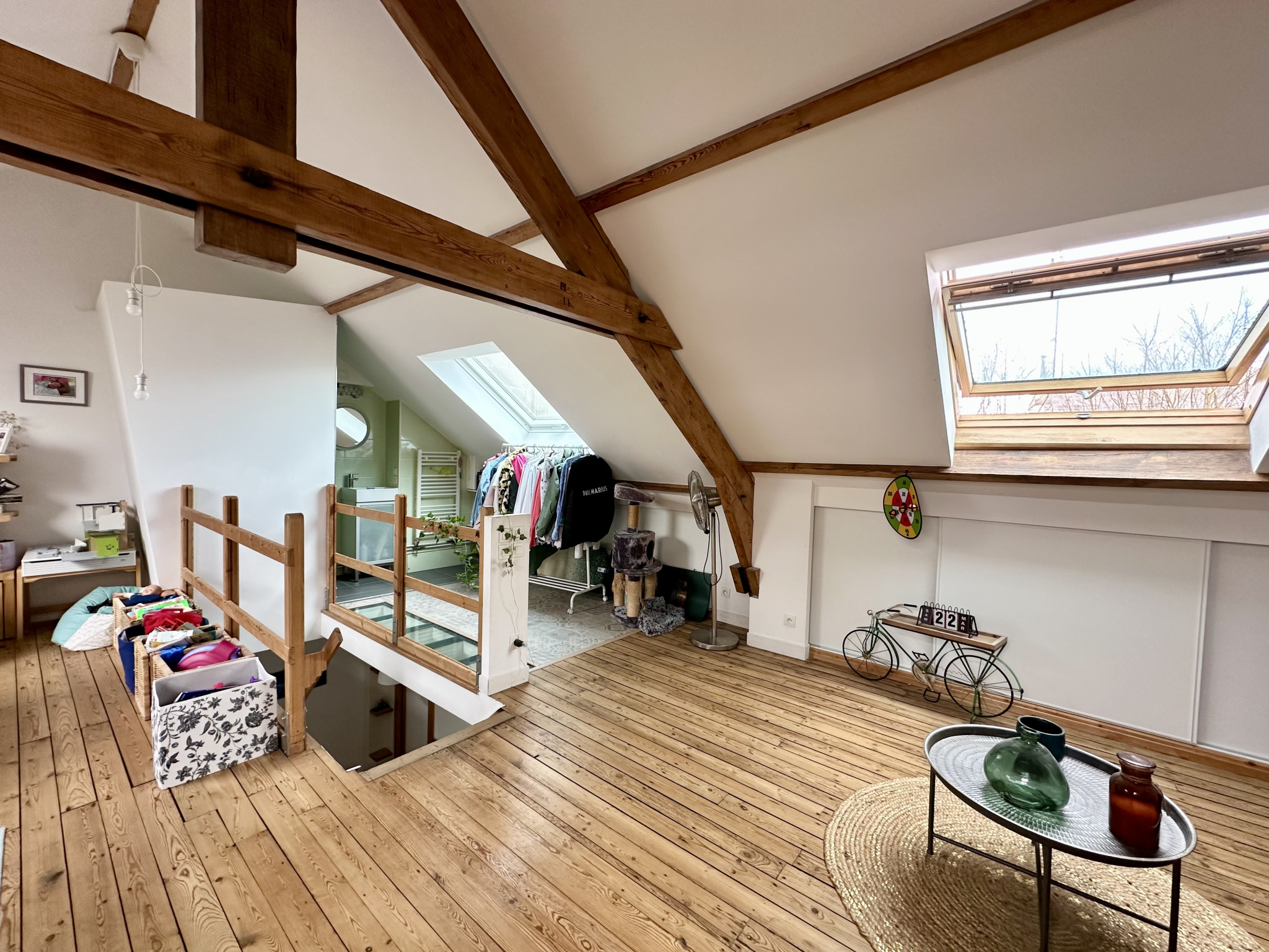 Le dernier étage, sous combles, accueille un espace parental avec salle de douche privative.