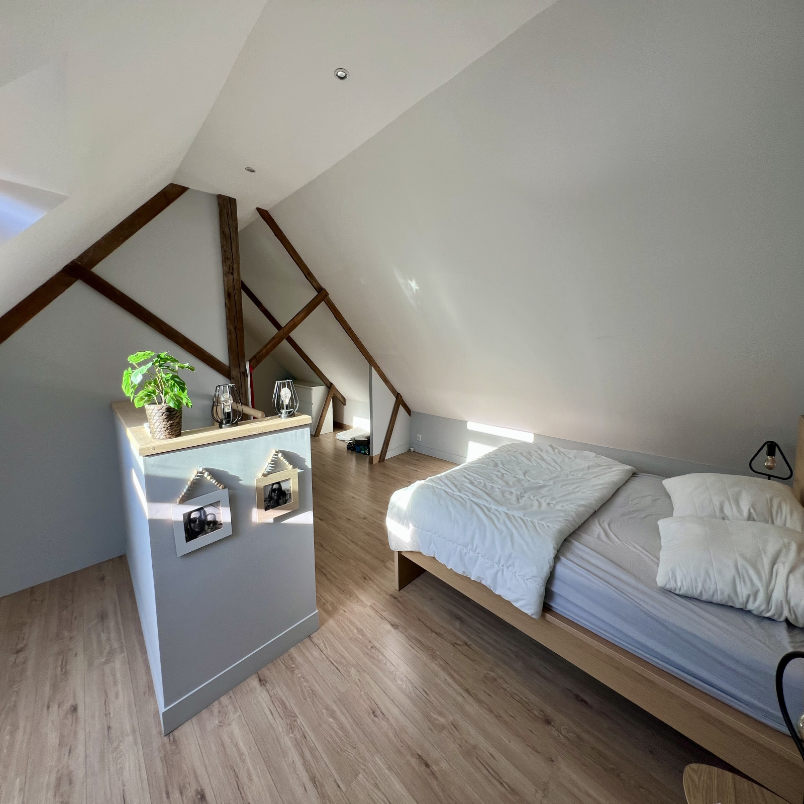 Le dernier étage, entièrement aménagé, propose une magnifique suite parentale avec salle de douche, espace dressing ou coin bureau.