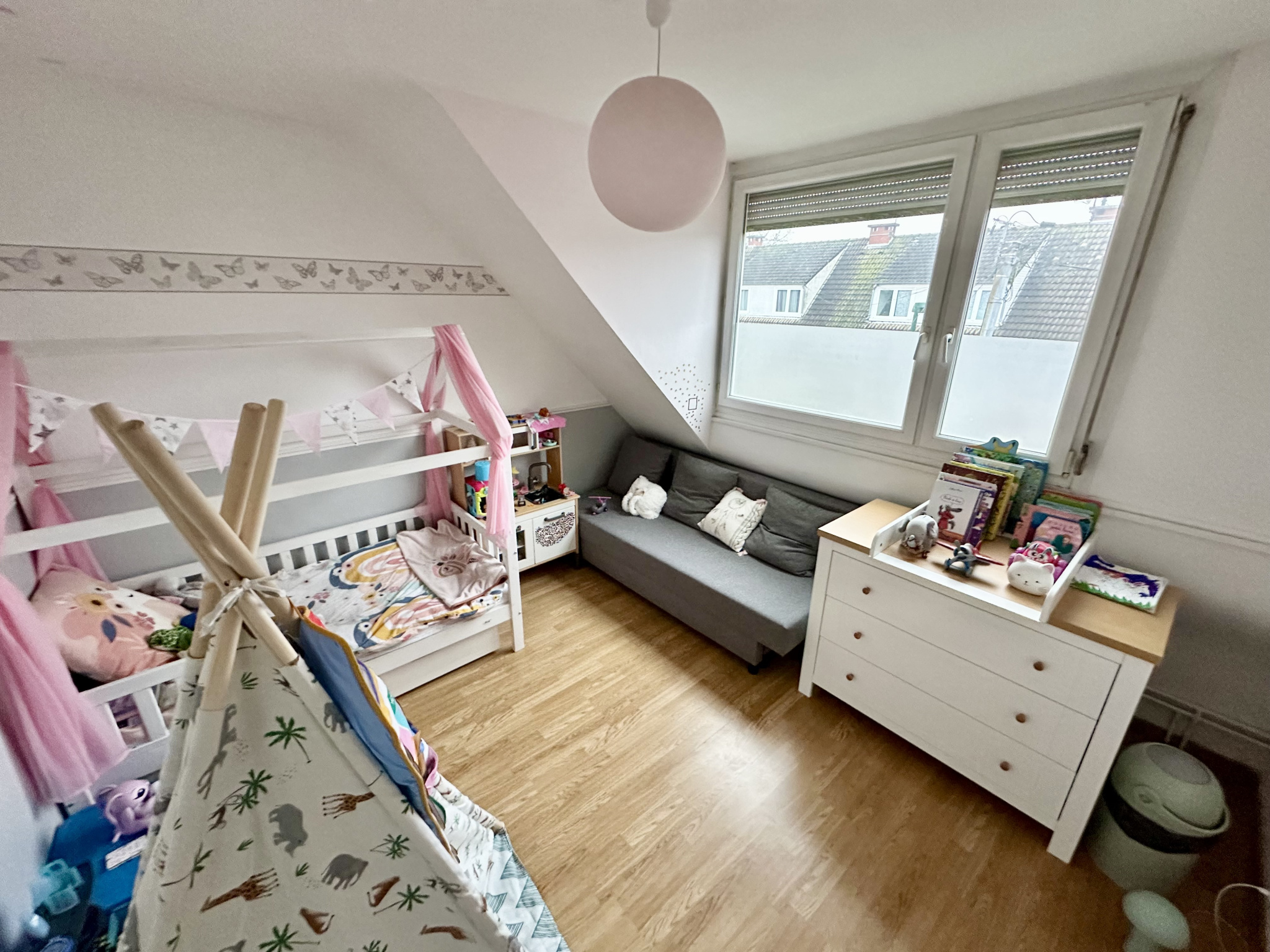 Dans un quartier calme de Deûlemont, la maison se compose au rez-de-chaussée d’une entrée, d’un toilette séparé, d’un salon-salle à manger avec cuisine ouverte, l’ensemble donnant accès à un extérieur d’environ 150 m² exposé sud-est.