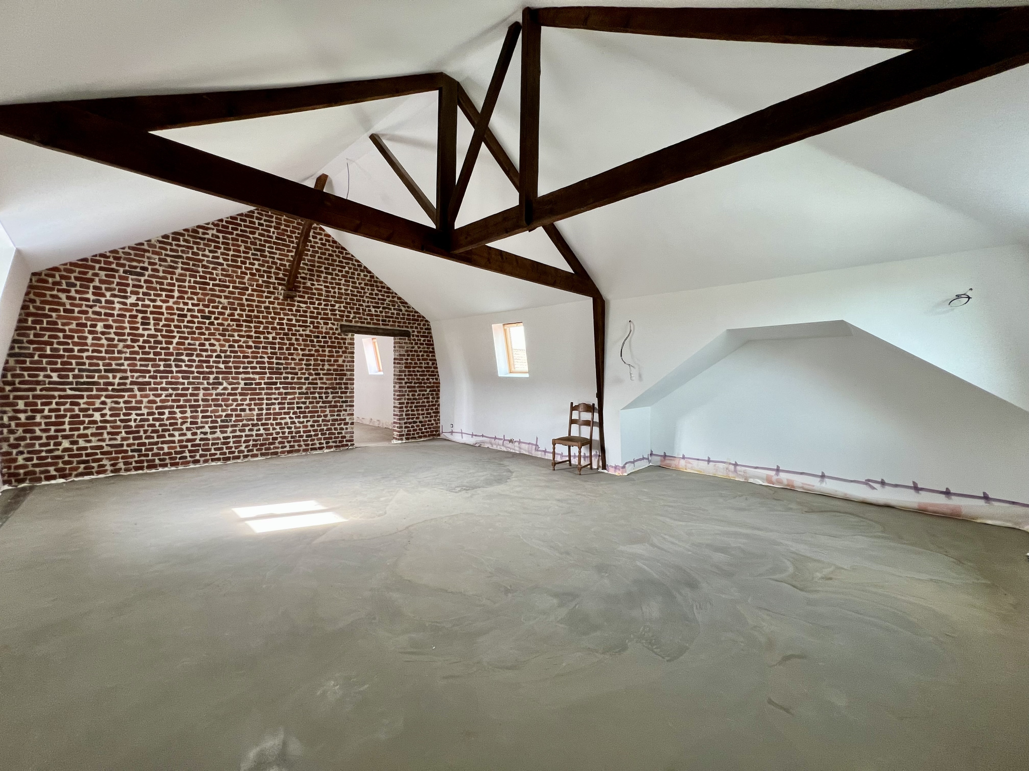Étage : vaste plateau de 50 m² (salle de jeux, second salon ou espace polyvalent), deux chambres supplémentaires, ainsi qu’un espace dédié à une future salle de bain et une buanderie.