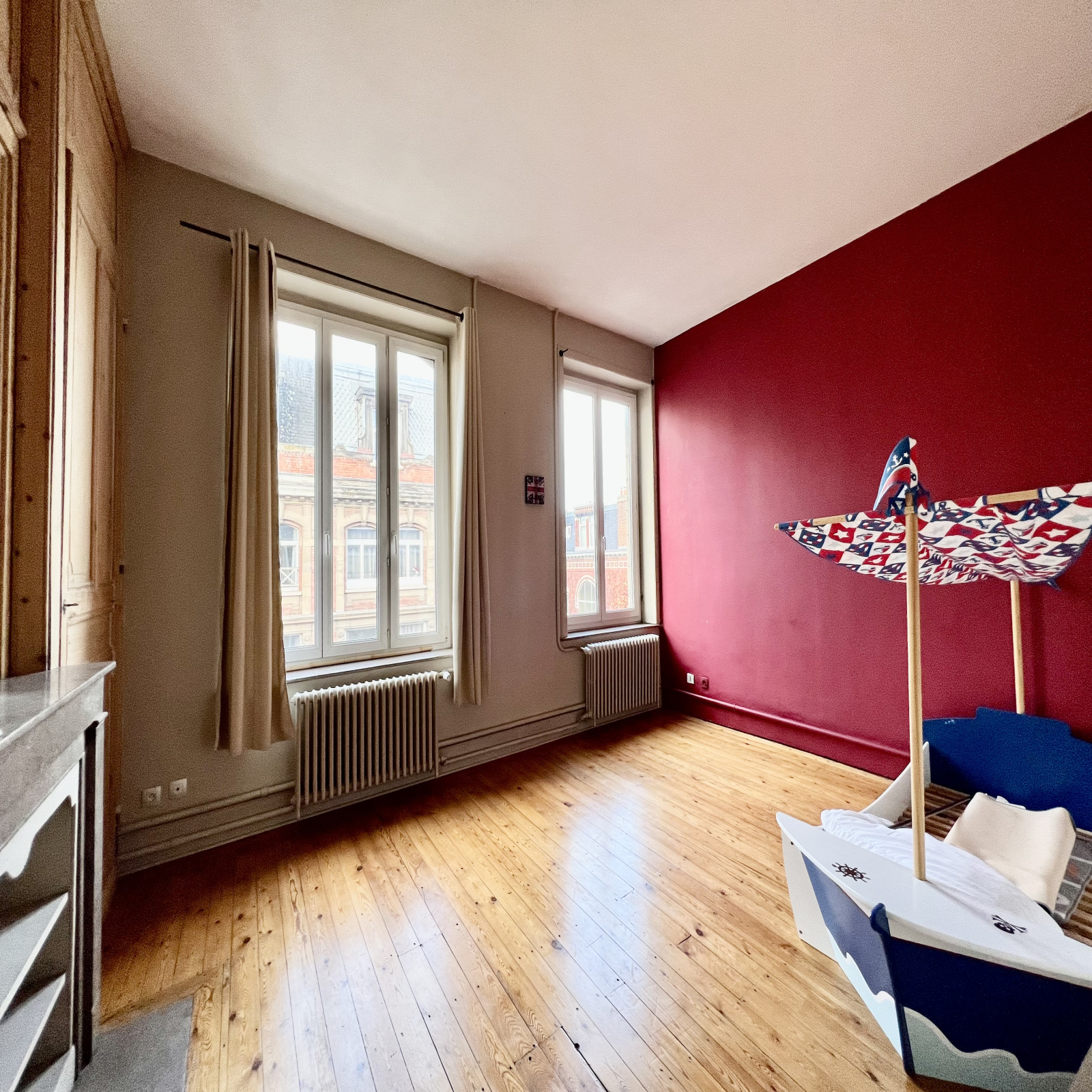 Situé en centre ville de Tourcoing, à proximité immédiate des transports en communs (Tram, Métro et Gare). Cet appartement de style haussmannien de 143 m2 avec du cachet, se compose d'un vaste hall desservant une pièce de vie lumineuse de 55m2 avec cuisine séparée équipée de 14m2, de 3 grandes chambres de 17 /16,5 & 16m2 dont une qui dispose d'une douche privative, une salle de bains et un toilette.