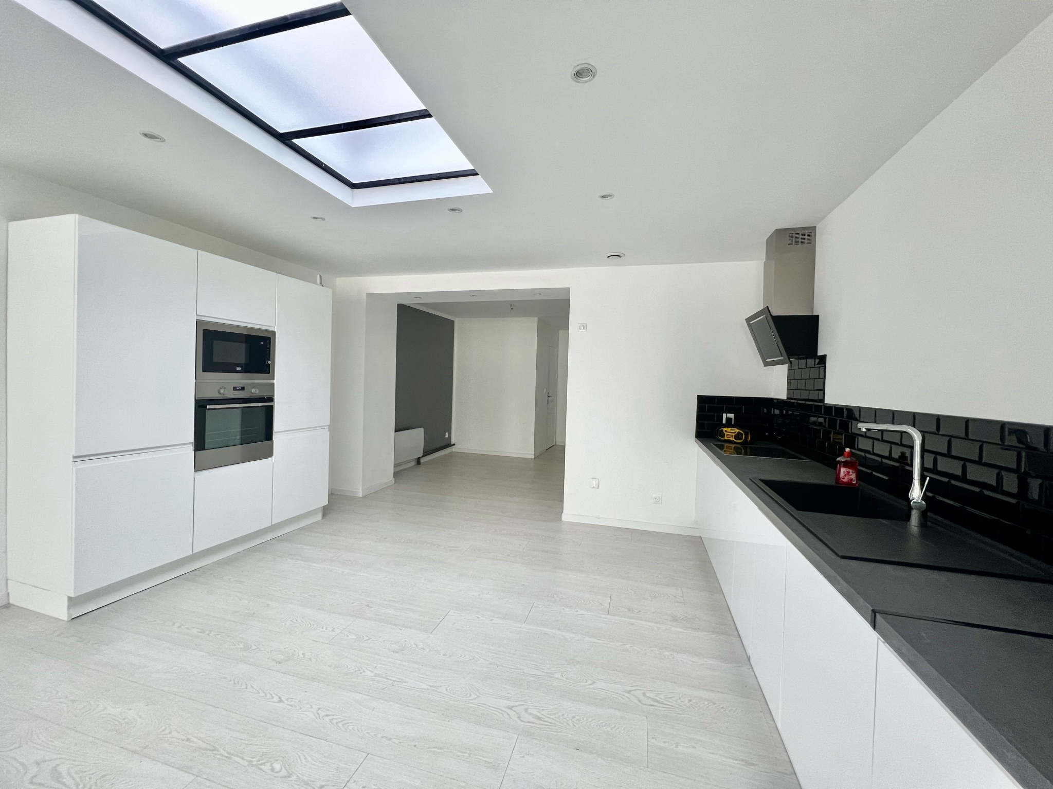Située à proximité du centre-ville, cette maison de 140m² entièrement rénovée avec jardin, se compose :